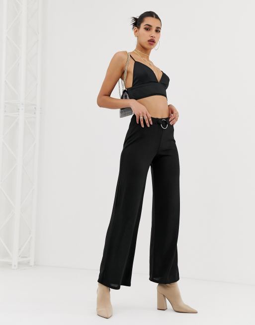 Boohoo ring detail wide leg trousers in black