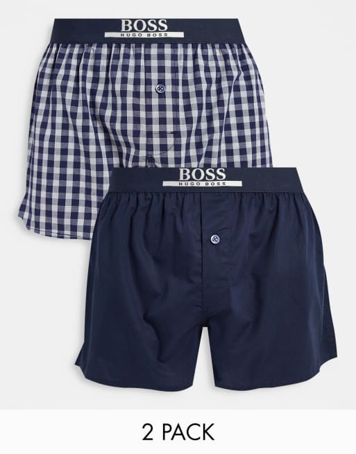 BOSS Bodywear 2 pack woven boxer shorts in navy/ check