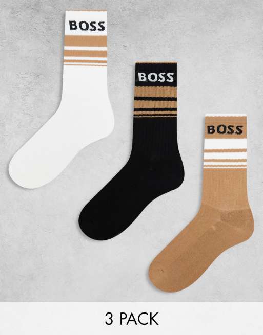 Boss Bodywear 3 pack rib stripe ankle sock in multi