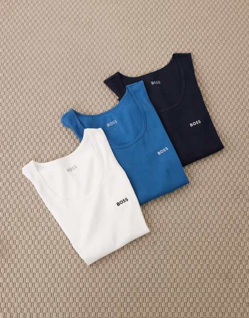 Boss Bodywear 3 pack ribbed logo vests in multi