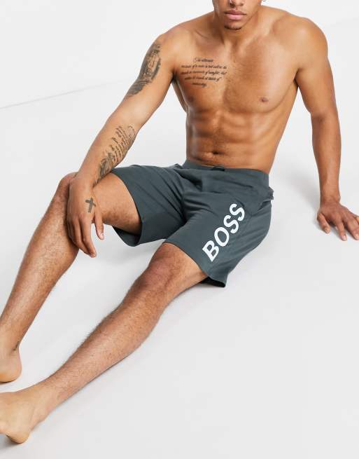 BOSS Bodywear Identity vertical contrast logo shorts in khaki
