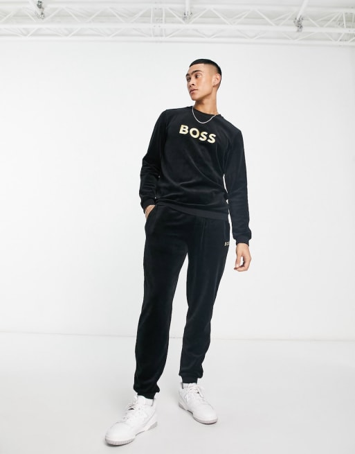 BOSS Bodywear velour lounge set in black