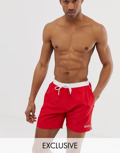 BOSS Star Fish swim shorts in red Exclusive at ASOS
