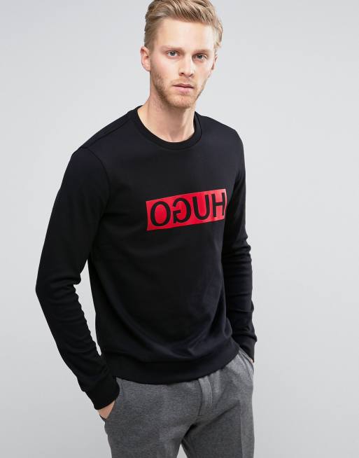 HUGO by HUGO BOSS Dicago Sweat Crewneck Reverse Logo in Black