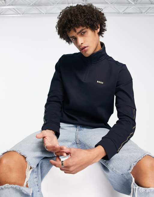 BOSS Green half zip sweat in navy