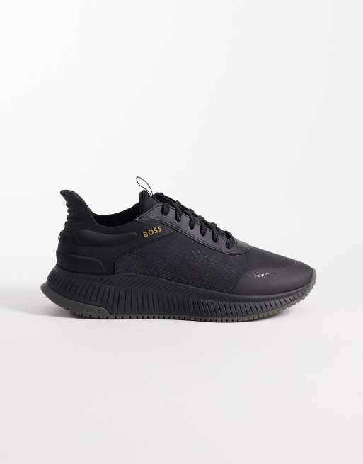 BOSS Black titanium evo trainers in black