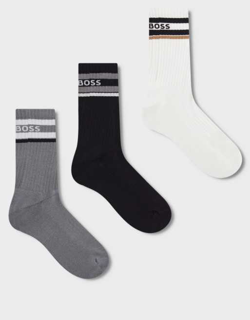 BOSS Bodywear 3-pack sport crew socks in black, white and grey