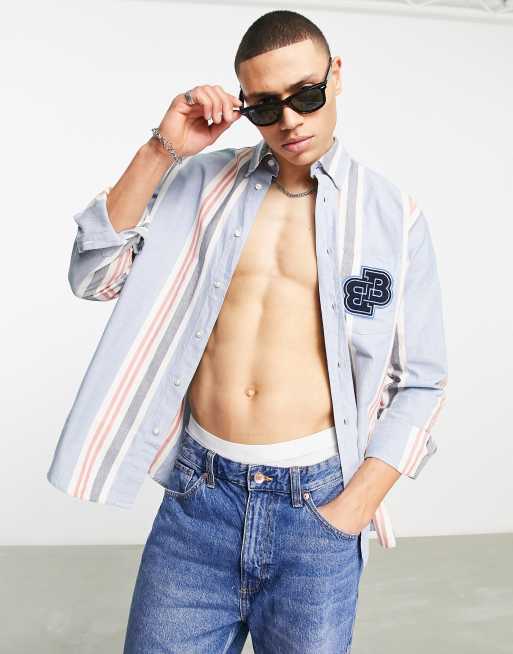BOSS Orange Lambey stripe overshirt in blue