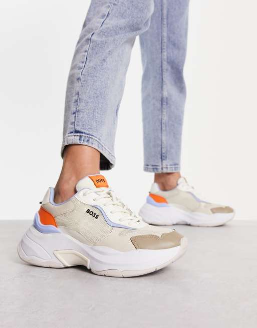 BOSS Orange Noa Chunky Runn trainer sin off white and light blue