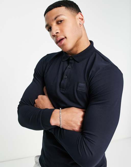 BOSS Orange Passerby long sleeve polo in navy