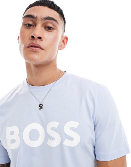 BOSS Orange Thinking logo t-shirt in open blue