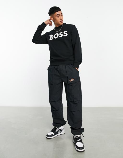 BOSS Orange WeBasicCrew large logo relaxed fit sweatshirt in black