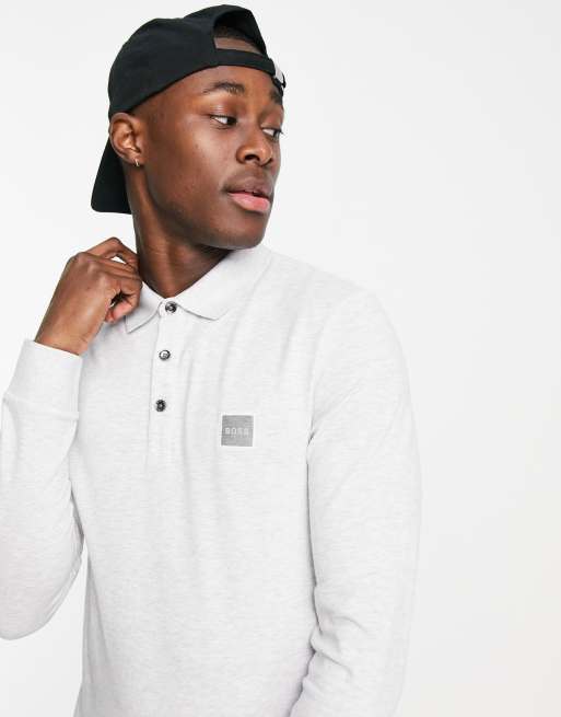 BOSS Passerby long sleeve polo in off white