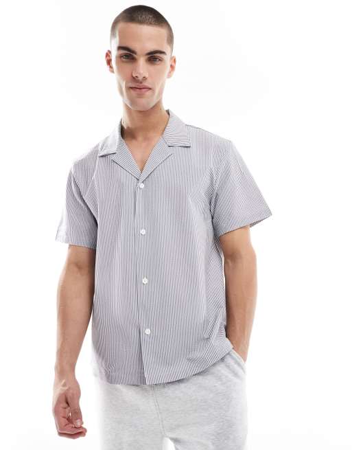 Boss seersucker striped shirt in blue and white