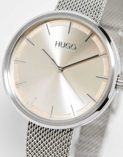 Hugo Boss mesh strap watch in silver