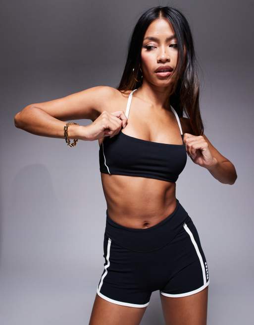 Bo+Tee contrast trim sports bra co-ord in black and white