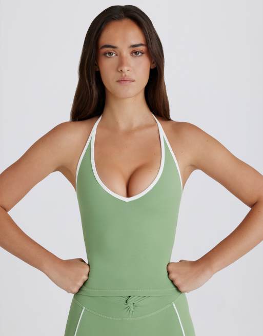 Bo+Tee halterneck contrast trim crop top co-ord in green