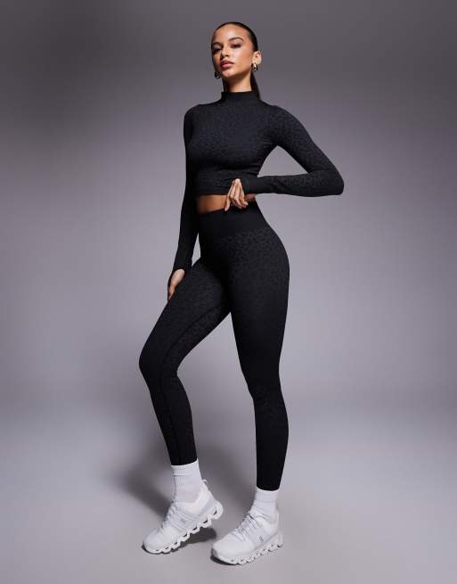Bo+Tee thermal seamless high waisted leggings in black leopard