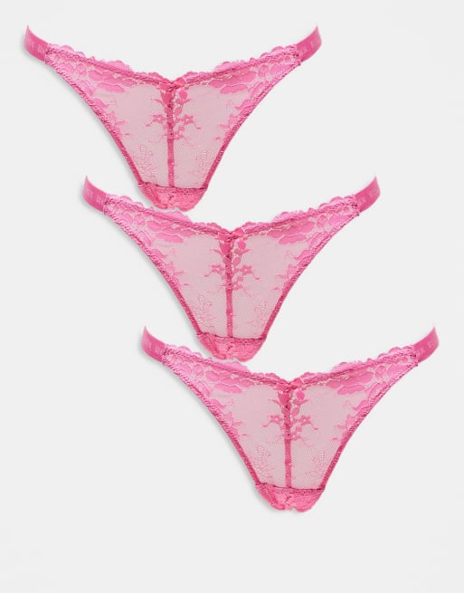 Boux Avenue 3 pack lace thongs in bubblegum pink