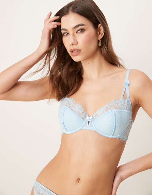 Boux Avenue Afina eyelash lace padded plunge in baby blue