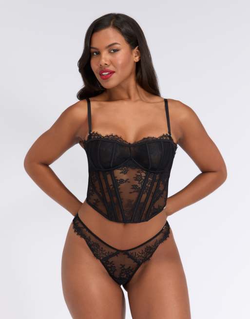 Boux Avenue Ava floral sheer lace corset with boning lingerie in black