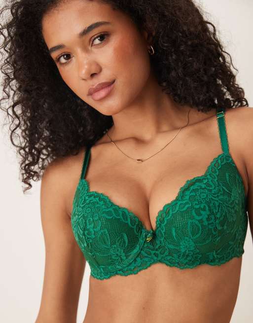 Boux Avenue Billie floral lace padded balconette bra in green