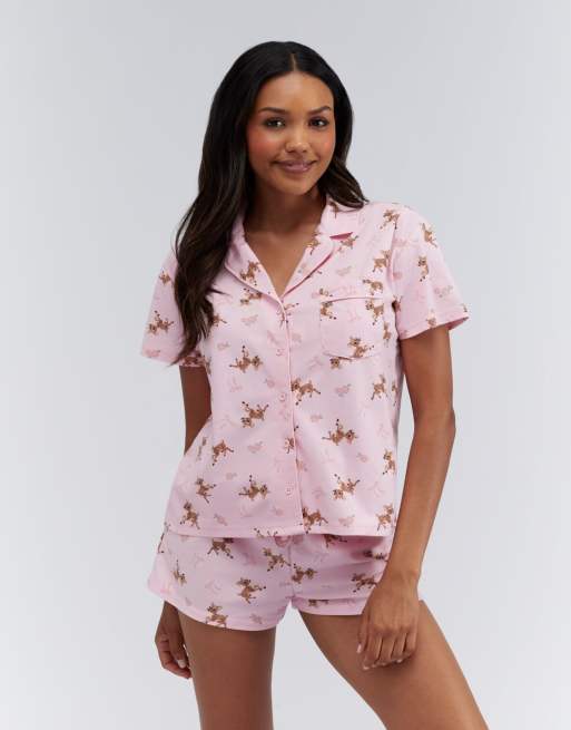 Boux Avenue Deer print pyjama shorties in a bag nightwear set in pink mix