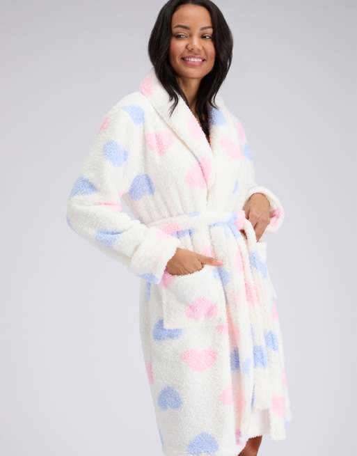 Boux Avenue Fluffy boucle heart midi belted dressing gown in ivory mix