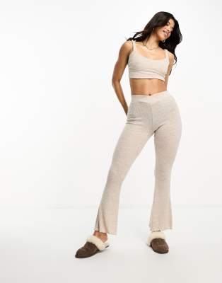 Boux Avenue Leila rib v waistband flare trouser in stone