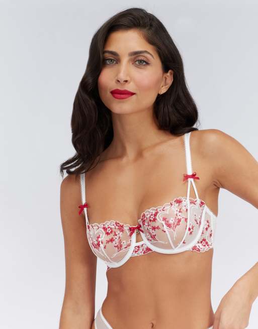 Boux Avenue Lisette embroidered balconette bra underwired lingerie in white mix