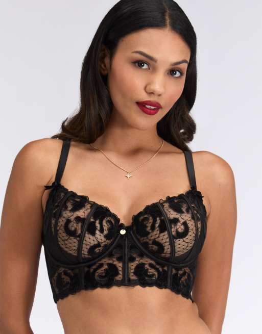 Boux Avenue Rosetta embroidered underwired longline bra lingerie in black