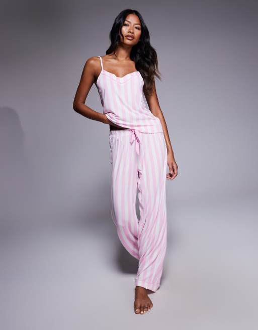 Boux Avenue Stripe modal cami top and trousers pyjama set in pink mix