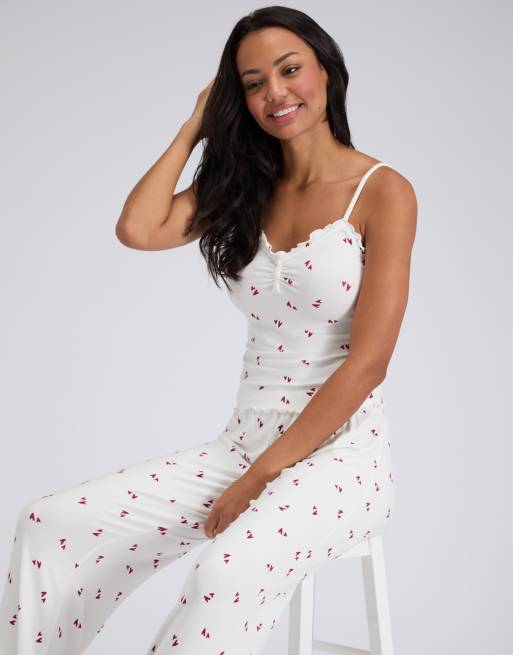Boux Avenue Supersoft heart cami top and trousers pyjama set in ivory mix