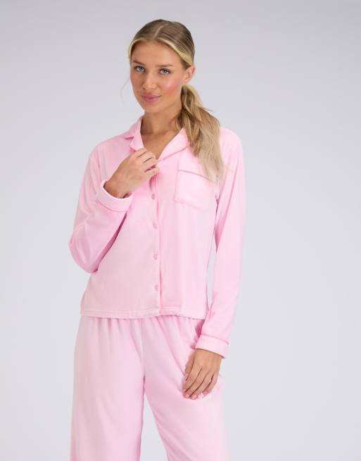 Boux Avenue Velour soft long sleeve top and trousers pyjama set in pink mix