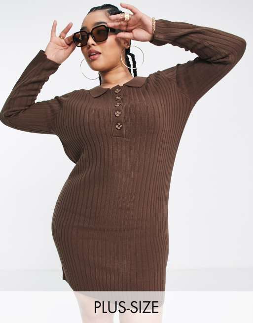 Brave Soul Plus matilda knitted polo neck dress