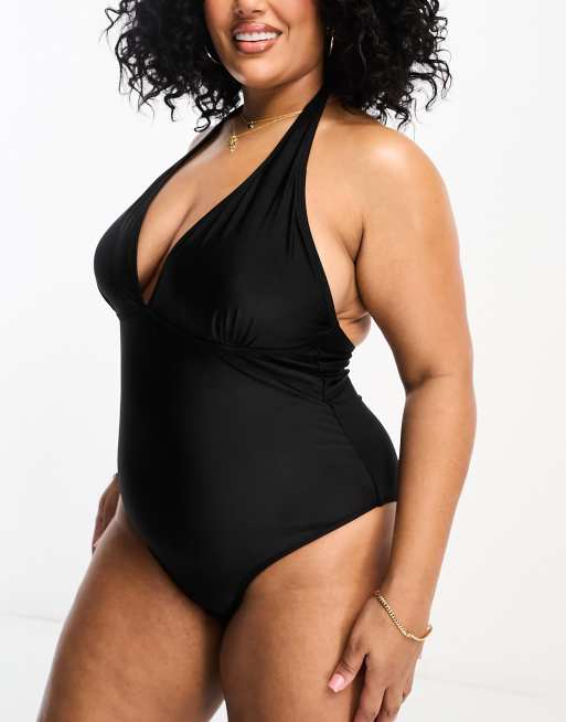 Brave Soul Plus triangle halter swimsuit in black