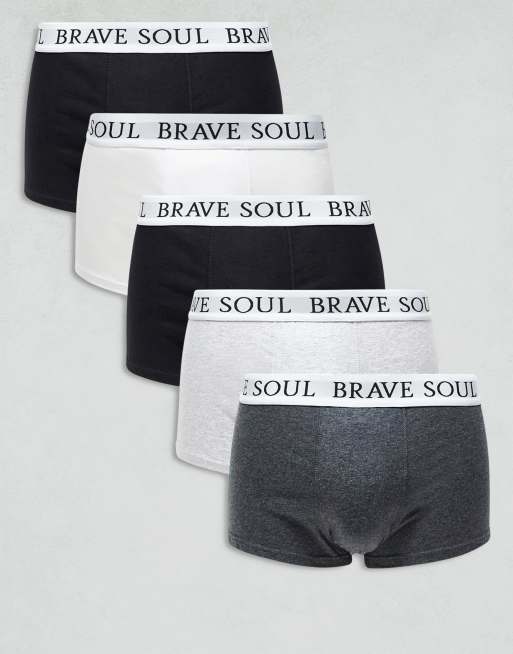 Brave Soul 5 pack boxers with logo waistband in black, grey, white