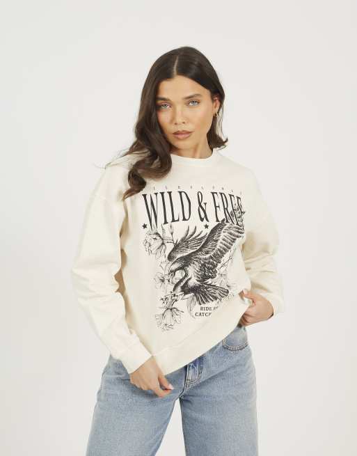 Brave Soul Acid wash graphic print sweatshirt in beige