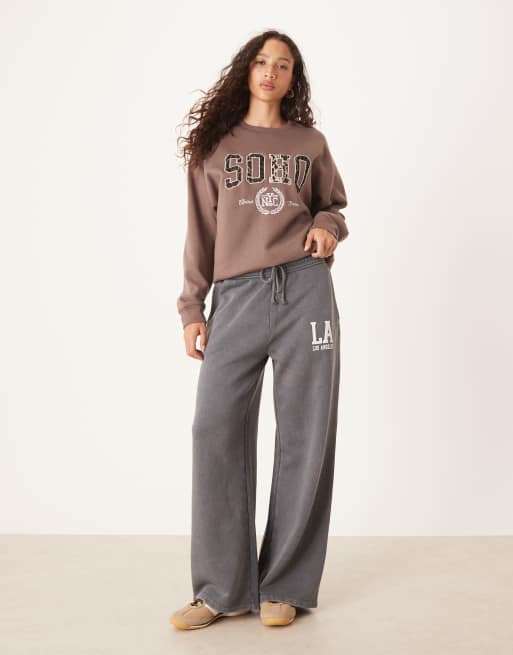 Brave Soul Acid wash wide leg joggers in charcoal