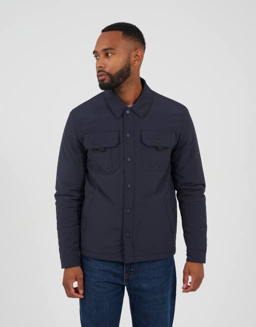 Brave Soul Borg lined zip-up shacket in navy