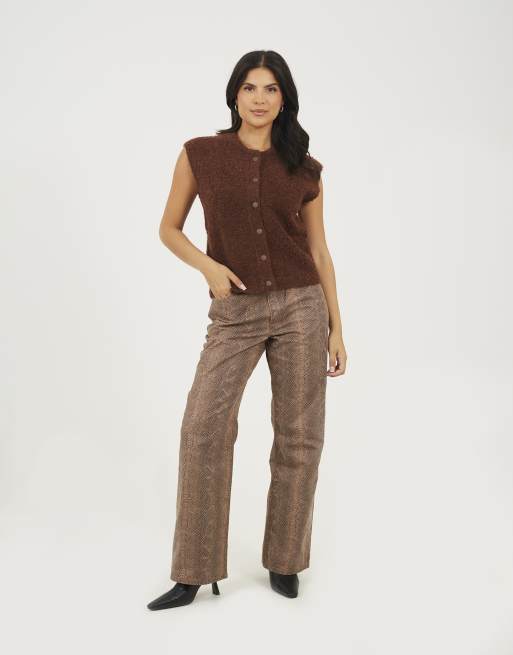 Brave Soul Boucle knitted waistcoat in brown