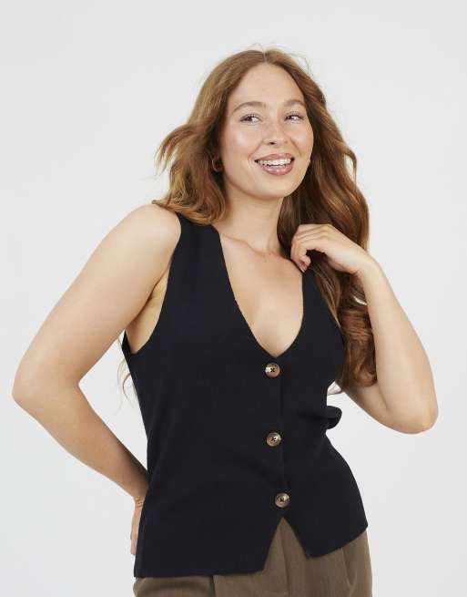 Brave Soul Button through knitted waistcoat in black
