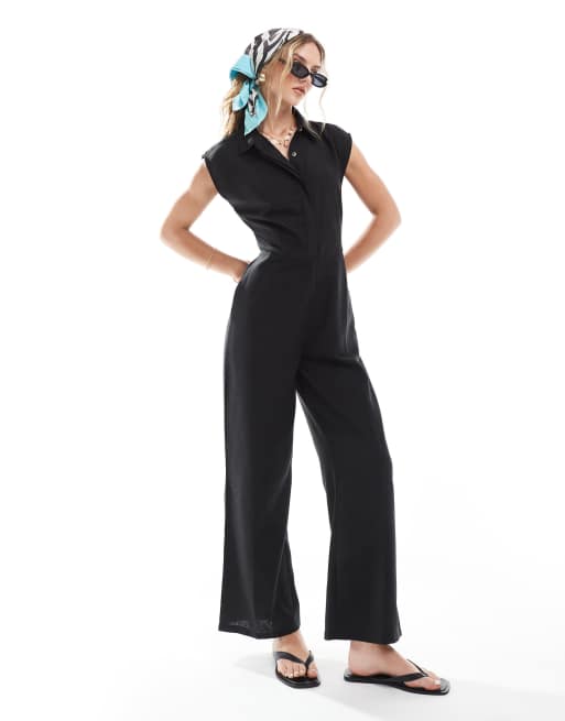 Brave Soul button up tailored jumpsuit in black