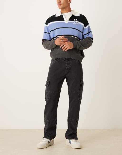 Brave Soul Cargo style denim jeans with side hem split detail in charcoal
