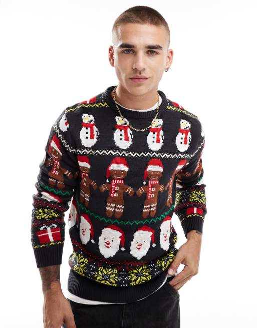 Brave Soul Christmas crew neck jumper in navy multi