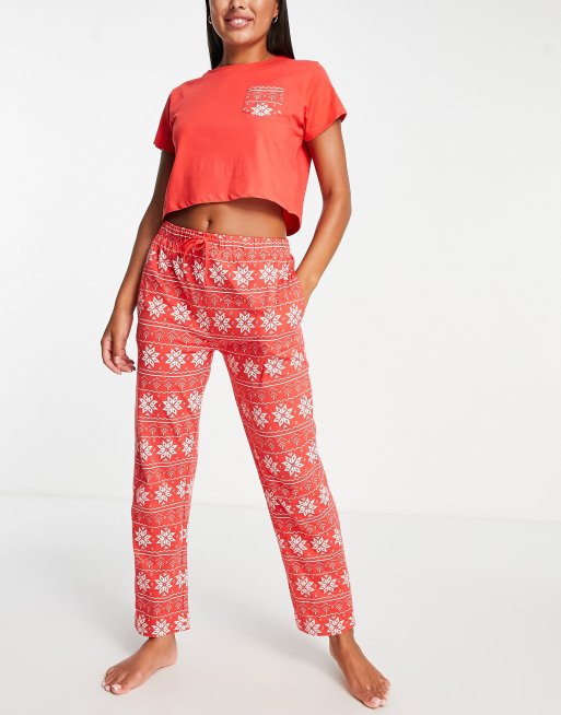 Brave Soul christmas fairisle snowflake pyjama set in red