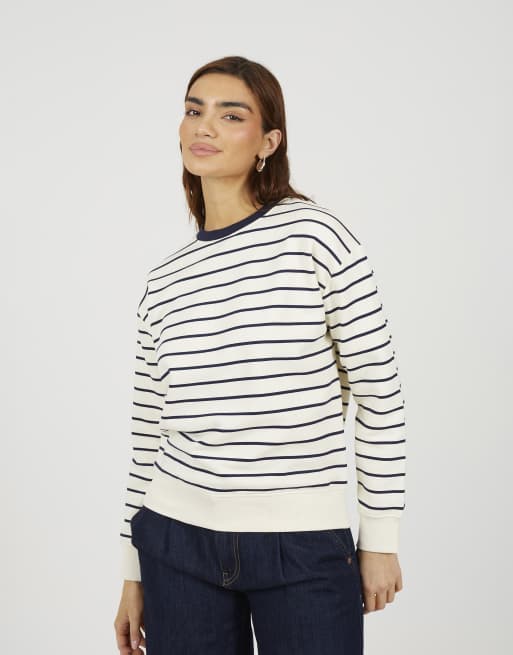 Brave Soul Classic stripe crew neck sweatshirt in navy