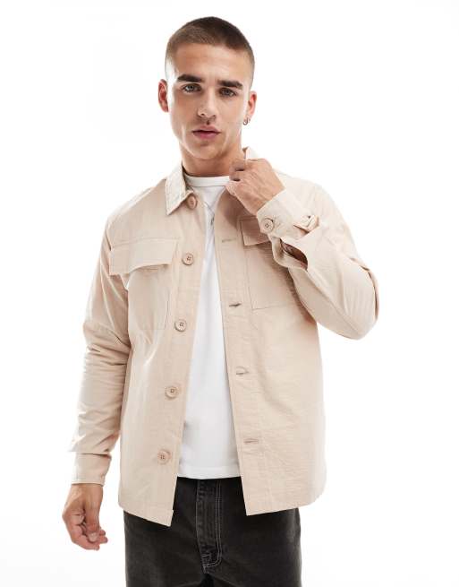 Brave Soul Co-ord seersucker lightweight shacket in stone