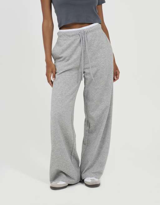 Brave Soul Contrast double waistband wide leg joggers in grey
