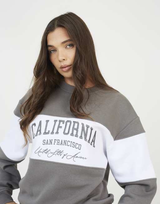 Brave Soul Contrast stripe panel crew neck sweatshirt in grey